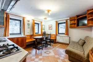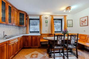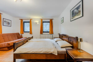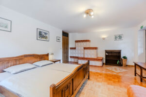 This comfortable ground-floor apartment with a traditional touch and wooden details offers everything needed for a relaxing stay. The bright bedroom includes a spacious double bed and an additional pull-out sofa, allowing accommodation for up to four people. The large kitchen with a dining area and all necessary equipment is perfect for meal preparation, while in colder months, you can warm up by the cozy fireplace. The spacious bathroom features a shower, toilet, and bidet. The apartment offers a view of the picturesque nature and is an ideal choice for couples or small families seeking a comfortable retreat in a peaceful setting.