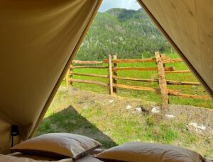 Pets are not allowed in the glamping tents.